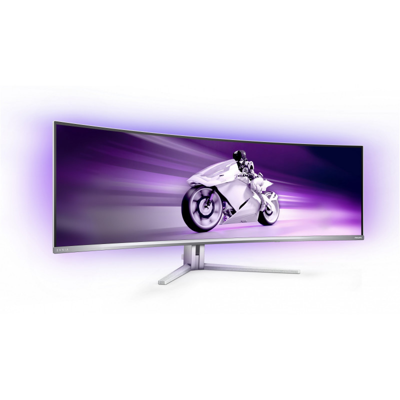 "Philips Evnia 8000 49M2C8900/00. Display diagonal: 124.2 cm (48.9""), Display resolution: 5120 x 1440 pixels, HD type: Dual QHD, Display technology: QD-OLED, Response time: 0.03 ms, Native aspect ratio: 32:9, Viewing angle, horizontal: 178°, Viewing angle, vertical: 178°. Built-in speaker(s). Built-in USB hub, USB hub version: 3.2 Gen 1 (3.1 Gen 1). VESA mounting, Height adjustment. Product colour: White"\n"Elevate your gaming experience with this monitor's incredible contrast-producing QD OLED display, 32:9 Curved SuperWide screen, and exclusive Ambiglow feature so you can set the mood of the room for each game."
