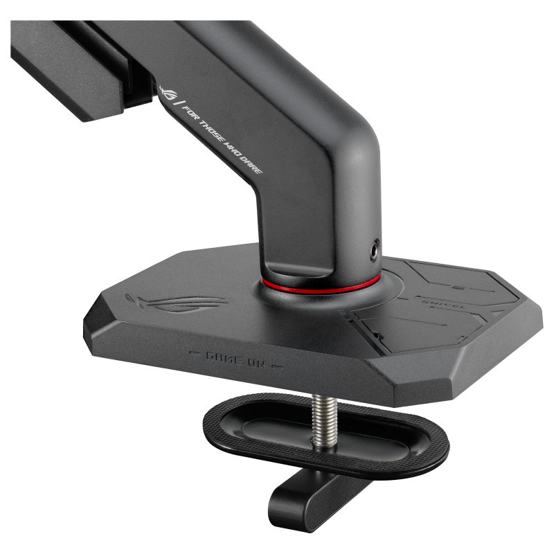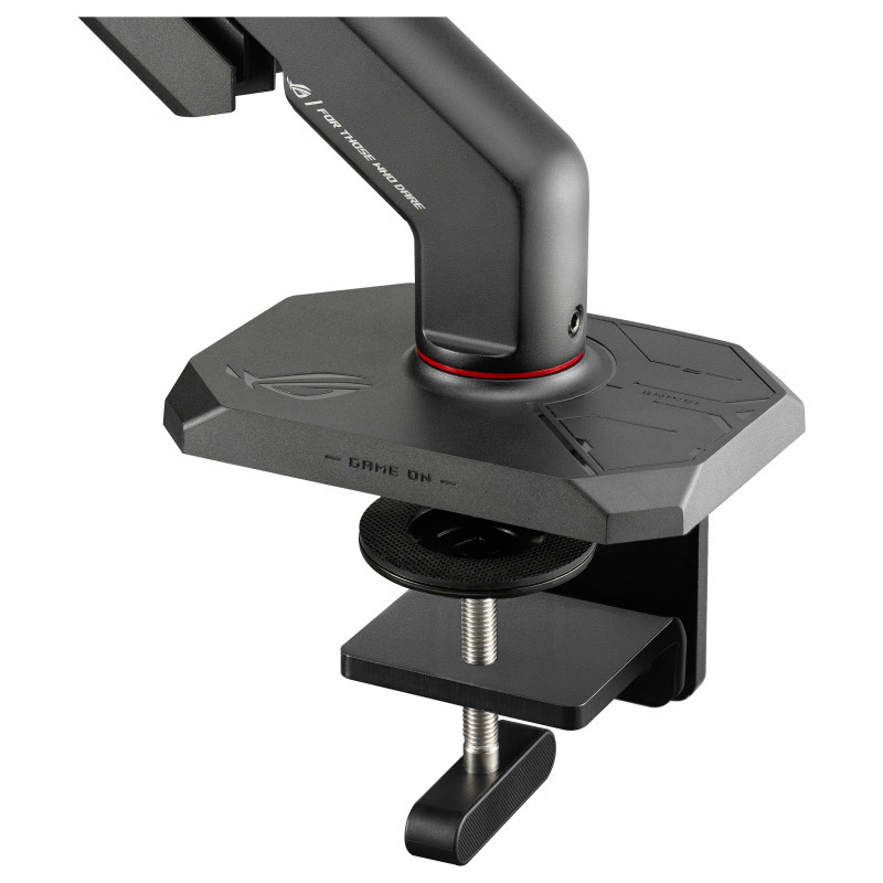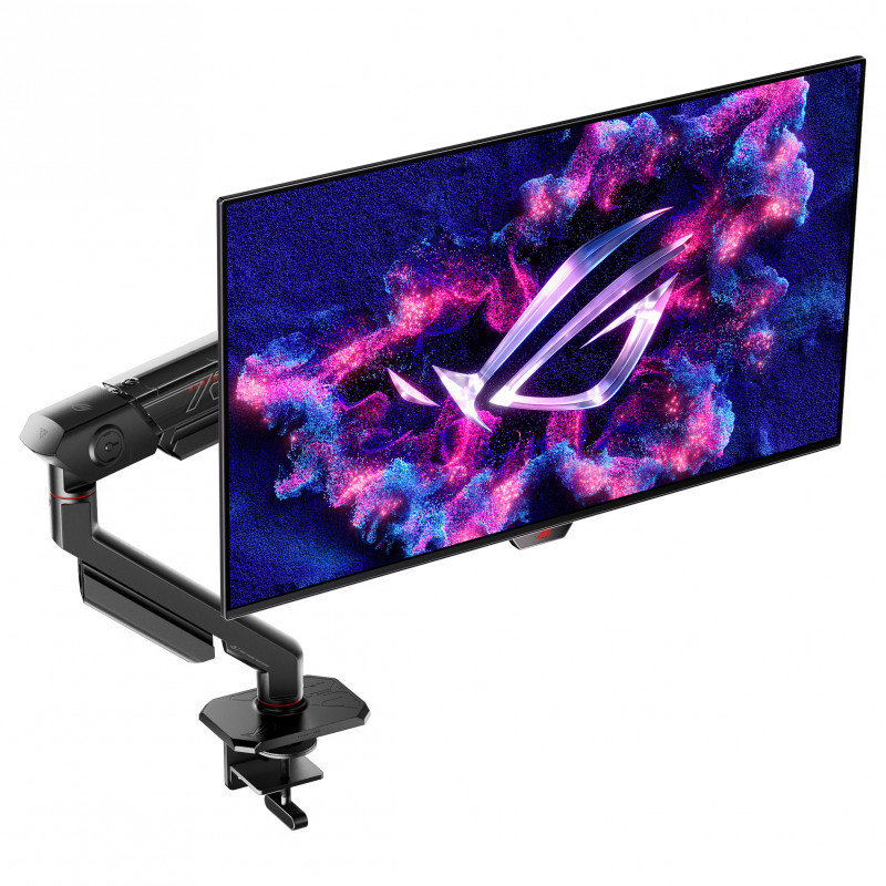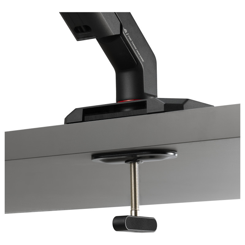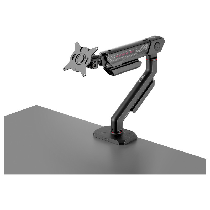 "ASUS AAS01R. Mounting: Clamp/Grommet, Maximum weight capacity: 13.5 kg, Maximum screen size: 124.5 cm (49""), Minimum VESA mount: 100 x 100 mm, Maximum VESA mount: 100 x 100 mm. Height adjustment, Swivel angle range: -90 - 90°, Tilt angle range: -25 - 80°. Product colour: Black"\n"ROG ERGO MONITOR ARM