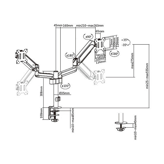 equip Tischhalterung 17" - 32" 2TFT je 9kg 360 Gasfeder schwarz