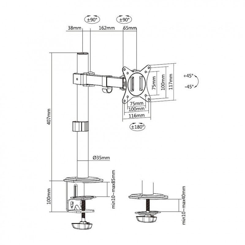 Equip Tischhalterung 17"-32"/1TFT 360° H.verst. 9Kg weiß retail