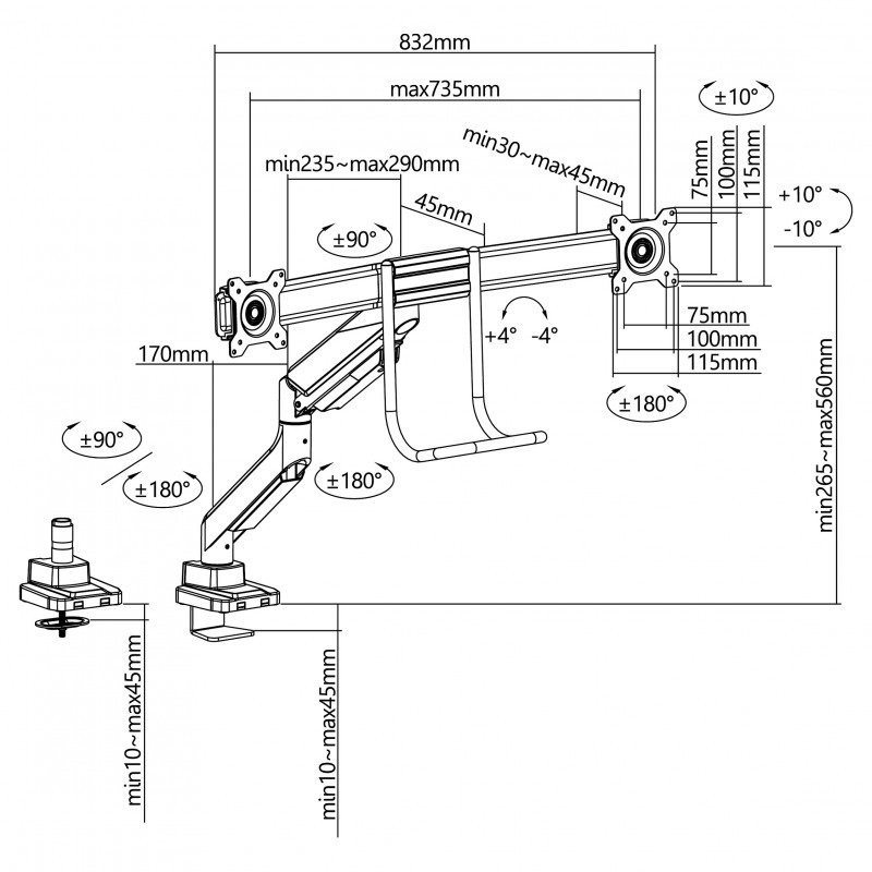 Equip Tischhalterung 17"-32"/2TFT 360° Gasfeder 9Kg silber lite Retail