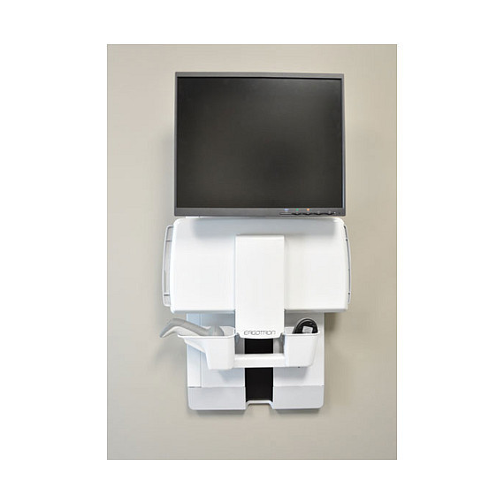 The slide-out, negative tilt keyboard enhances user comfort, while the monitor and keyboard pan capability promote patient-caregiver interaction. A unique cable management system conceals and organizes cords and makes cleaning a snap!