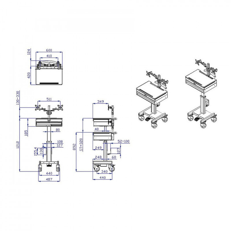 ROLINE Mobile PC-/LCD-Arbeitsstation, hhenverstellbar, bis 26 kg