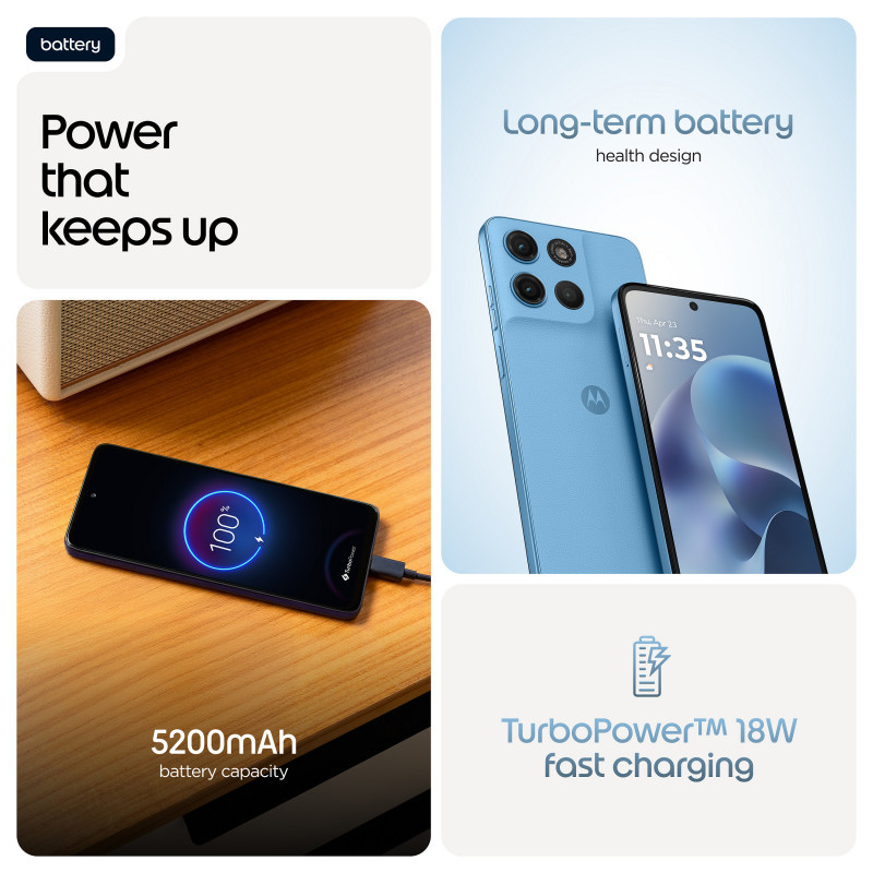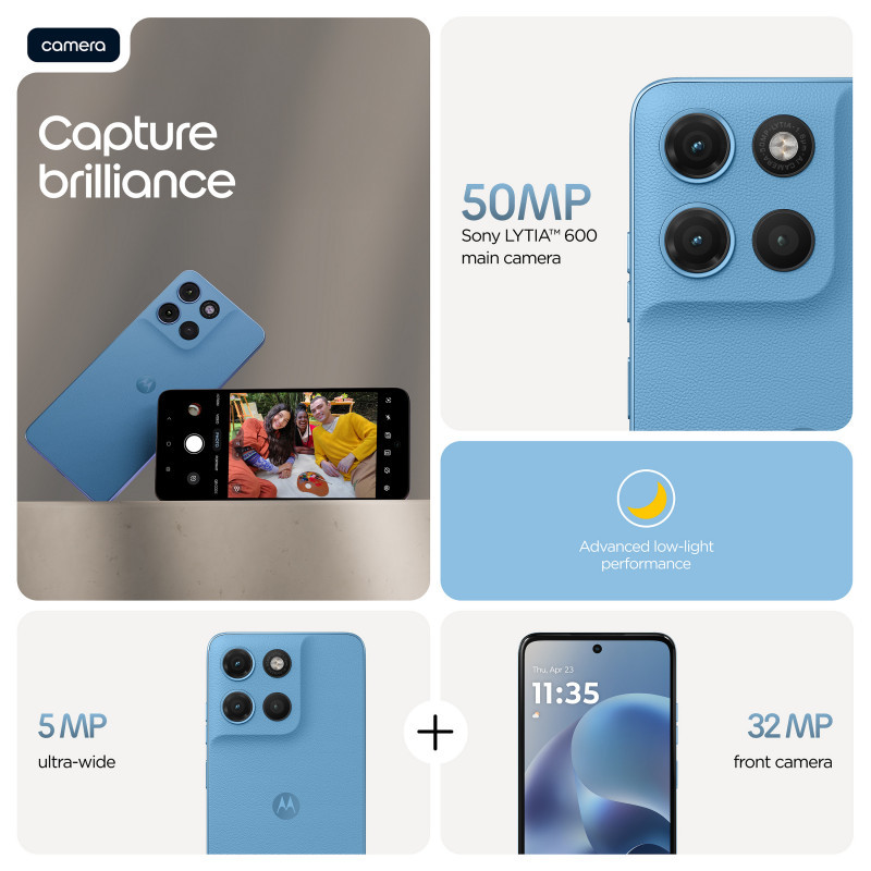 Introducing the moto g17, designed for those who create engaging content—and those who crave it. Capture brilliant shots from every angle and in any light with a 50MP Sony LYTIA™ 600 sensor(1), 5MP ultra-wide lens, and 32MP selfie cam(2). Create, edit, and multitask effortlessly with RAM Boost(3), tons of storage, and an octa-core processor. Power through your shoots and editing sessions with 55.8 hours of battery life(10) and fast TurboPower™ charging(8). Watch your favorite creators, reels, and videos on a sharp, vibrant 6.7""/6.72” Full HD+ display backed by stereo speakers and Dolby Atmos® sound. All this with a premium look-and-feel that’s built to last. The new moto g17 is a keeper in every way."