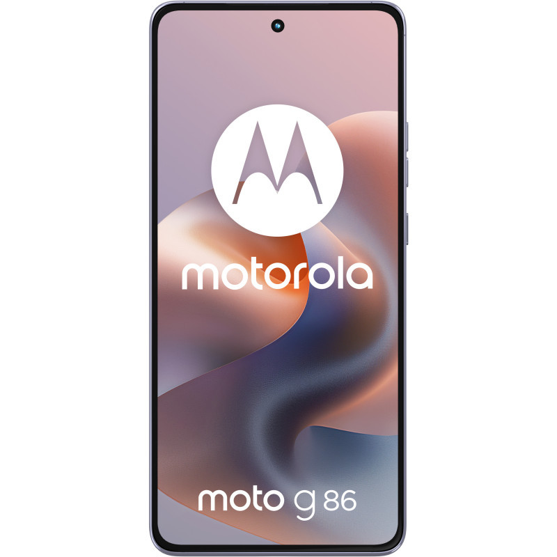 "Motorola moto g86 5G . Display diagonal: 16.9 cm (6.67""), Display resolution: 2712 x 1220 pixels. Processor family: MediaTek Dimensity, Processor model: 7300. RAM capacity: 8 GB, Internal storage capacity: 256 GB. Rear camera resolution (numeric): 50 MP, Rear camera type: Dual camera. SIM card capability: Dual SIM. Operating system installed: Android 15. Battery capacity: 5200 mAh. Product colour: Lilac. Weight: 185 g"\n"Bold design. Big adventures.