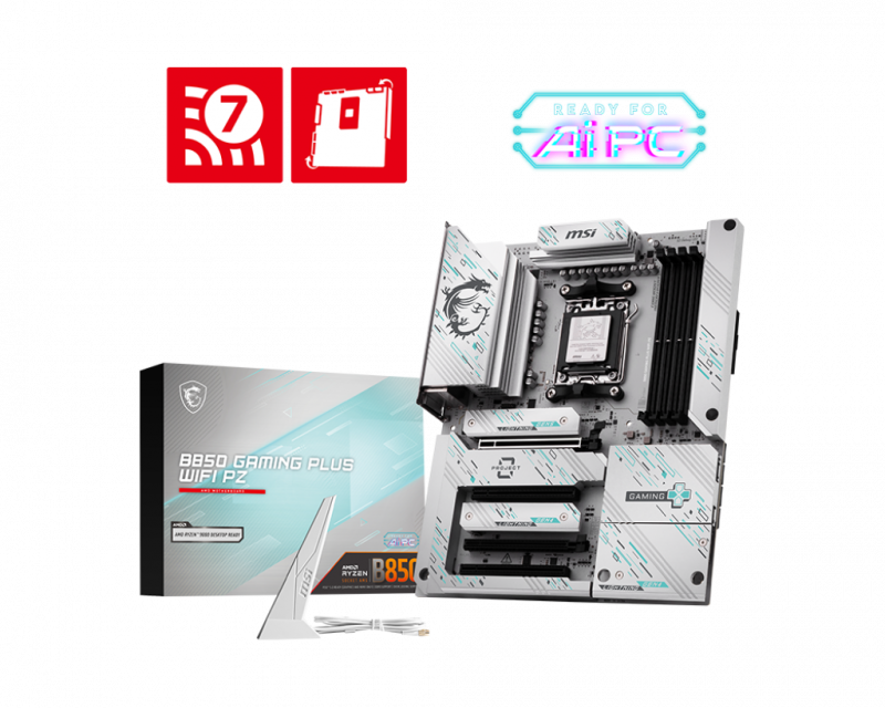 MSI B850 GAMING PLUS WIFI PZ | Processor family AMD B850 | Processor socket AM5 | DDR5 | Supported hard disk drive interfaces SATA, M.2 | Number of SATA connectors 4