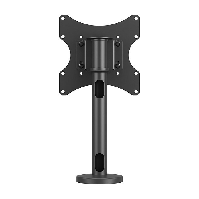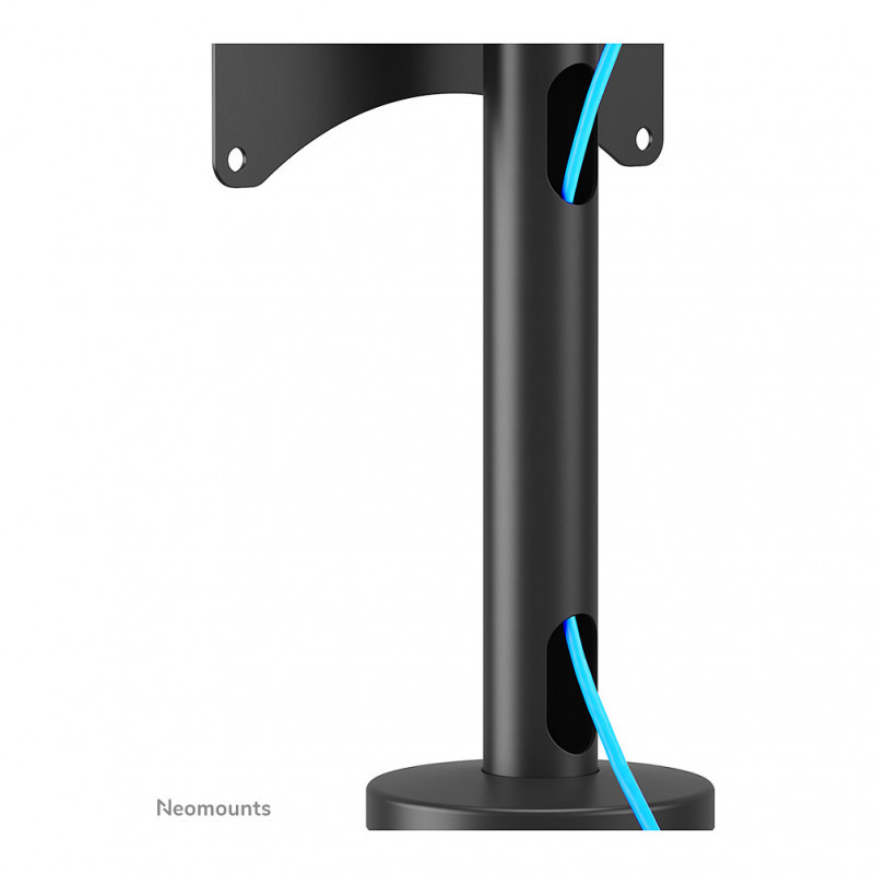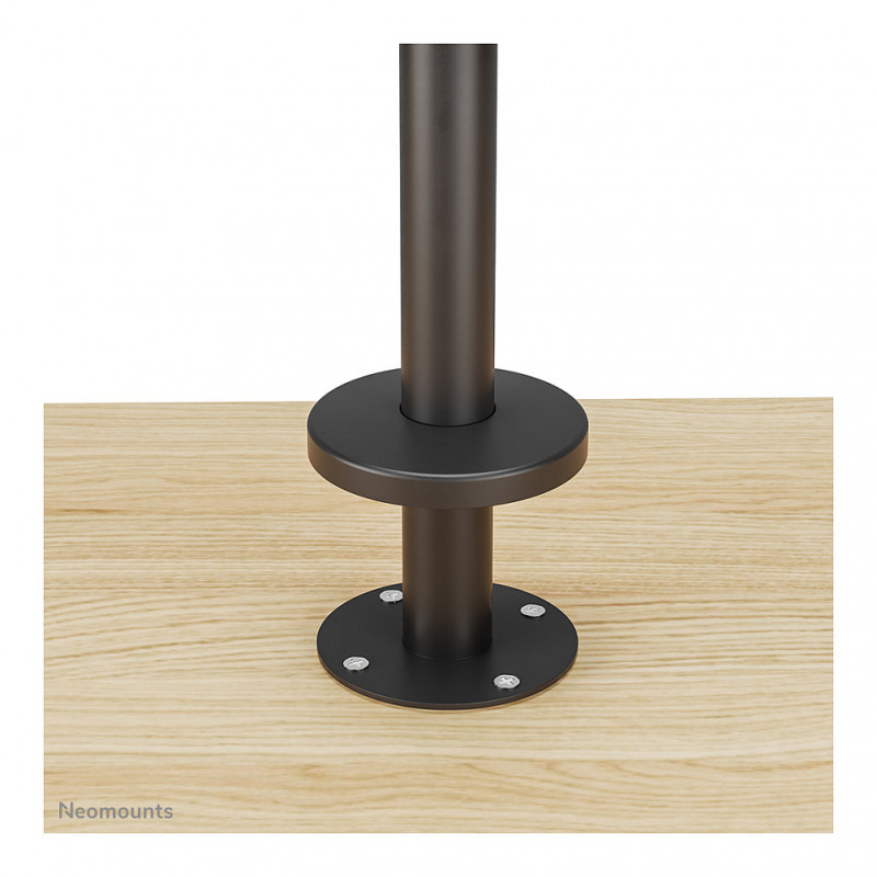 The DS42-430BL12 is suitable for screens that meet pattern 100x100 to 200x200 mm. For non-standard hole patterns, Neomounts has various VESA optional adapter plates available. Cables can be routed neatly through the rod and table top thanks to the internal cable management. The bolt down base ensures solid installation of the mount to the desk."
