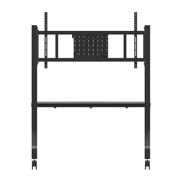 Designed with a sturdy structure, the MOVE Go XL offers the perfect solution for large and ultra-wide 105"" (touch) screens. The floor stand offers manual height adjustment in 2 preset positions, ranging from 129 to 139 cm, ensuring optimal viewing heights. For extra security, the screen can be fixed in place by locking the brackets using a padlock (not included). Additionally, a multimedia shelf (front and back mountable, max. 10 kg) and lockable, ventilated hardware compartment with cable opening are included and optional for installation.