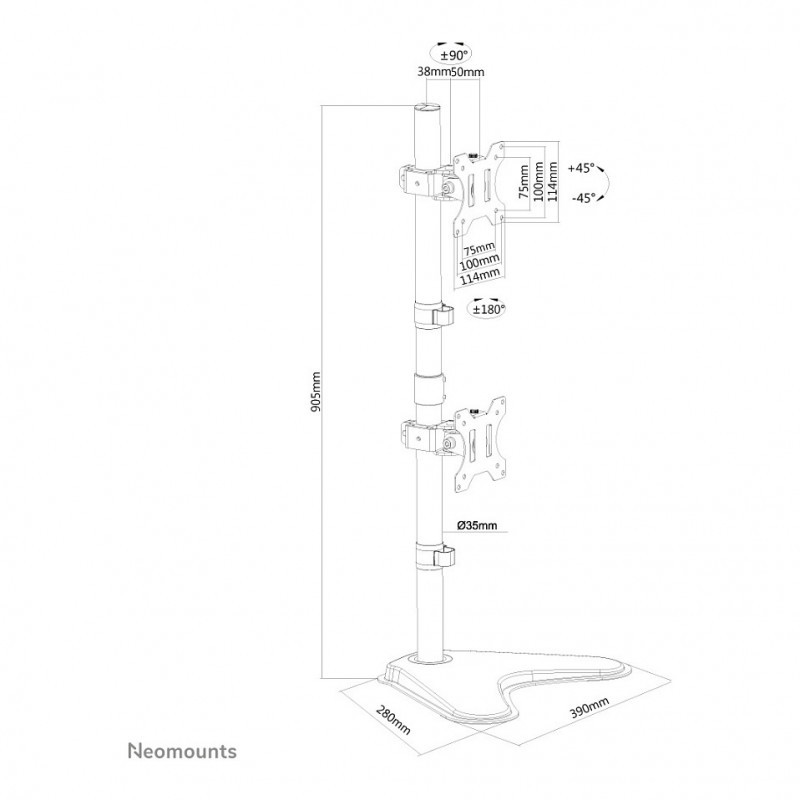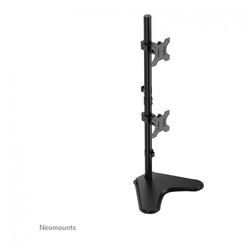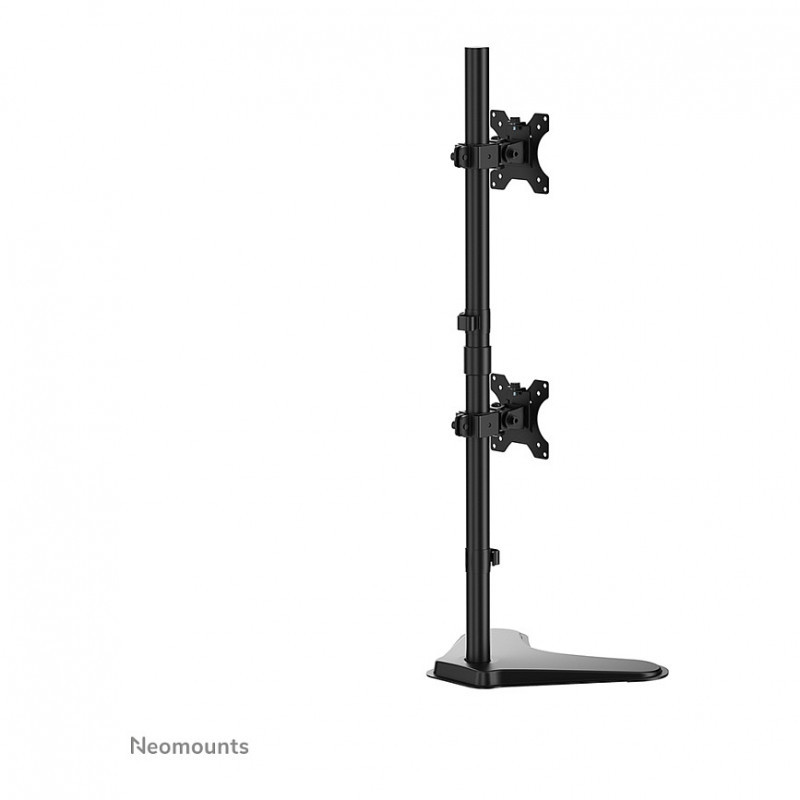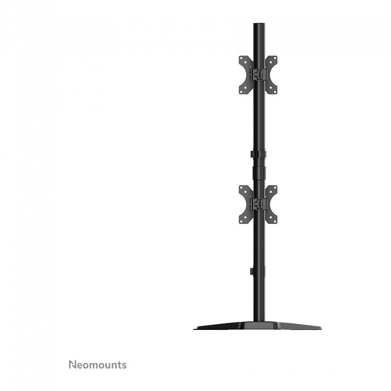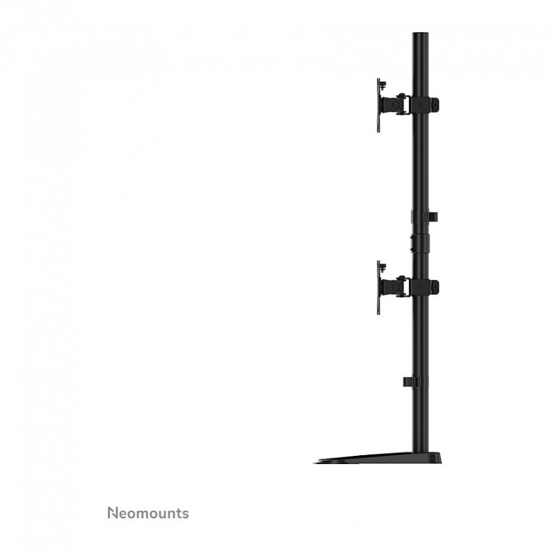"Neomounts FPMA-D550DDVBLACK Monitor stand 10-32"" - vertical installation. Mounting: Freestanding, Maximum weight capacity: 6 kg, Minimum screen size: 25.4 cm (10""), Maximum screen size: 81.3 cm (32""), Minimum VESA mount: 75 x 75 mm, Maximum VESA mount: 100 x 100 mm. Height adjustment, Swivel angle range: 0 - 180°, Tilt angle range: 0 - 90°. Product colour: Black"\n"The Neomounts desk mount, model FPMA-D550DDVBLACK is a tilt-, swivel and rotatable desk mount for 2 flat screens up to 32"". This mount is a great choice for placement on desks using a desk stand.