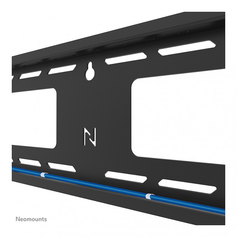 The LEVEL-750 wall mount has a profile of 9,3 cm and is suitable for screens that meet VESA hole pattern 100x100 to 400x400 mm. Its quickly connectable wall plate allows for multiple screen mounting. Additionally, the wall plate is designed with specific cut-outs for wall sockets and securing devices and cables. It features various perforated holes for easy tie-wrap cable fixing and provides space for cable storage, ensuring a clean and tidy finishing.