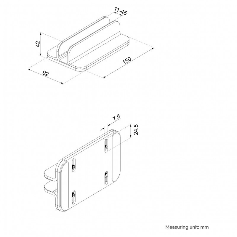 "Neomounts NSLS300SILVER Laptop holder 11-17"" - universal. Product type: Laptop stand, Product colour: Silver, Material: Aluminium. Height adjustment range: 0 - 42 mm, Width adjustment range: 0 - 150 mm, Depth adjustment range: 0 - 92 mm. Width: 150 mm, Depth: 92 mm, Height: 42 mm. Package width: 15 mm, Package depth: 250 mm, Package height: 370 mm. Master (outer) case width: 270 mm, Master (outer) case length: 320 mm, Master (outer) case height: 340 mm"\n"The Neomounts NSLS300SILVER is a vertical stand for laptops from 11"" up to 17"". The holder is width adjustable, making it universally applicable. The solid aluminium design ensures secure positioning of the laptop. The NSLS300SILVER is a smart space-saving solution for any desk."