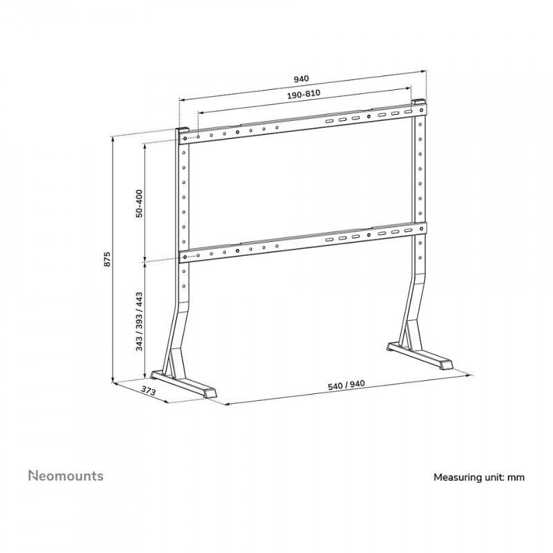 "Neomounts DS45-430BL18 TV stand 45-90"". Maximum weight capacity: 60 kg, Minimum screen size: 114.3 cm (45""), Maximum screen size: 2.29 m (90""), Minimum VESA mount: 200 x 200 mm, Maximum VESA mount: 800 x 400 mm. Height adjustment range: 0 - 100 mm. Product colour: Black"\n"The Neomounts DS45-430BL18 is a TV desk stand for screens up to 90"" with a weight capacity of 60 kg. The TV stand can be adjusted in height for the optimum viewing position.