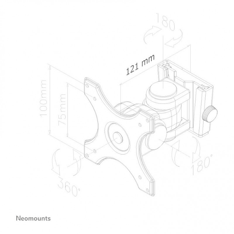 "Neomounts FPMA-W250BLACK Monitor/TV mount wall 10-30"" - full motion. Maximum weight capacity: 12 kg, Minimum screen size: 25.4 cm (10""), Maximum screen size: 76.2 cm (30""), Minimum VESA mount: 75 x 75 mm, Maximum VESA mount: 100 x 100 mm. Tilt angle range: 0 - 180°, Swivel angle range: 0 - 180°, Angle of rotation: 360°, Distance to the wall (max): 12 cm. Product colour: Black"\n"The Neomounts FPMA-W250BLACK wall mount is suitable for flat screens up to 30"" with a maximum weight capacity of 12 kg. The mount can tilt and swivel to position the screen in the optimal viewing position.
