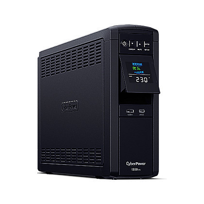 "CyberPower CP1350EPFCLCD. UPS topology: Line-Interactive, Output power capacity: 1.35 kVA, Output power: 780 W. AC outlet types: Type F, Power plug: C14 coupler, AC outlets quantity: 6 AC outlet(s). Battery capacity: 8.5 Ah, Battery voltage: 12 V, Typical backup time at full load: 4 min. Form factor: Tower, Product colour: Black, Cooling type: Passive. Compliance certificates: RoHS"\n"Backup PFC Sinewave Series for Mac.