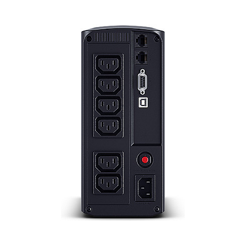 "CyberPower VP700EILCD. UPS topology: Line-Interactive, Output power capacity: 0.7 kVA, Output power: 390 W. AC outlet types: C13 coupler, AC outlets quantity: 6 AC outlet(s), Cabling technology: 10/100/1000Base-T(X). Battery technology: Sealed Lead Acid (VRLA), Typical backup time at full load: 1 min, Typical backup time at half load: 10 min. Form factor: Tower, Product colour: Black, Housing material: Plastic. Compliance certificates: RoHS, Certification: CE, EAC"\n"CyberPower VP700EILCD offers home and office users a reliable battery backup and safeguards office PCs and other electronic devices from surges, spikes, brownouts and other power incidents. Designed with GreenPower UPS™ Technology to improve operating efficiency and to minimize energy consumption, users can enjoy significant energy cost savings over conventional UPS systems. The UPS provides Automatic Voltage Regulation (AVR) to maintain safe voltage for connected equipment.