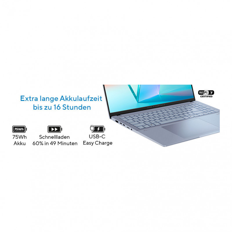 The ASUS Vivobook S16 elevates your laptop encounter, harmoniously blending advanced technology with a clean, minimalist design. It showcases the power of up to Intel® Core™ Ultra 7 processor (Series 2) for exceptional performance, a dedicated Copilot key1 for more AI exploration, a svelte 1.5 kg2 construction, a substantial 16-hour battery life3, and a captivating 3K ASUS Lumina OLED screen. It also includes an ergonomically designed keyboard with vibrant RGB backlighting, a generously sized touchpad, and an ASUS AI camera. This laptop is the perfect companion for modern life."