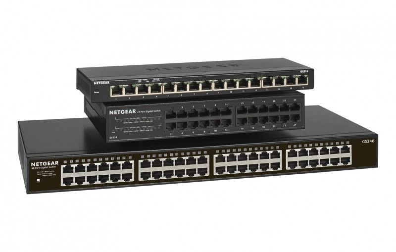 NETGEAR GS348 Ne-valdomas Gigabit Ethernet (10/100/1000) 1U Juoda