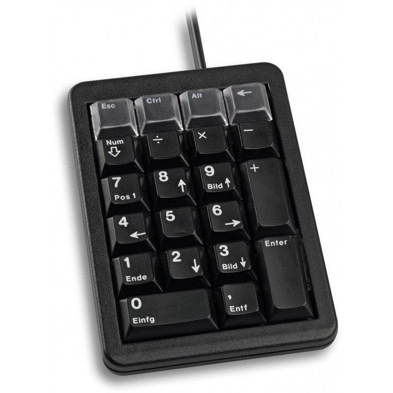 "CHERRY G84-4700 KEYPAD Corded, USB, Black (UK/US). Device interface: USB, Keyboard number of keys: 21, Purpose: Laptop/PC. Cable length: 1.75 m, Product colour: Black. Weight: 185 g"\n"Whether for numerical inputs, controls or for frequent number entry - the programmable keyboard is the ideal accessory for notebooks. All keys can be user-defined with up to 24