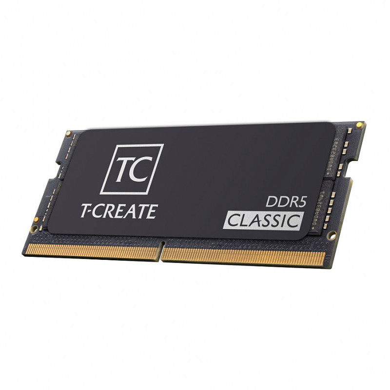 "Team Group T-CREATE CLASSIC CTCCD532G5600HC46A-S01. Component for: Laptop, Internal memory: 32 GB, Memory layout (modules x size): 1 x 32 GB, Internal memory type: DDR5, Memory clock speed: 5600 MHz, Memory form factor: 262-pin SO-DIMM, CAS latency: 46"\n"Unleash creativity with yet another legendary classic