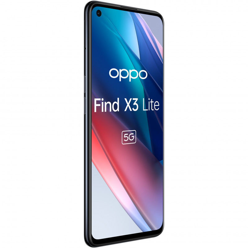 "OPPO Find X3 Lite . Display diagonal: 16.3 cm (6.43""), Display resolution: 2400 x 1080 pixels. Processor family: Qualcomm Snapdragon, Processor model: 765G. RAM capacity: 8 GB, RAM type: LPDDR4X, Internal storage capacity: 128 GB. Rear camera resolution (numeric): 64 MP, Rear camera type: Quad camera. SIM card capability: Dual SIM. Operating system installed: ColorOS 11.1. Battery capacity: 4300 mAh. Product colour: Black. Weight: 172 g"\n"Look Forward and Back