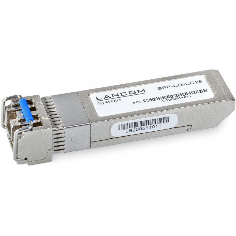 "LANCOM SFP-LR-LC25 (Bulk 10). SFP transceiver type: Fiber optic, Maximum data transfer rate: 25000 Mbit/s, Interface type: SFP28. Product colour: Stainless steel, Form factor: SFP, Brand compatibility: Lancom. Weight: 310 g. Quantity per pack: 10 pc(s). Country of origin: China"\n"Flexible connections for your switches, routers, and firewalls