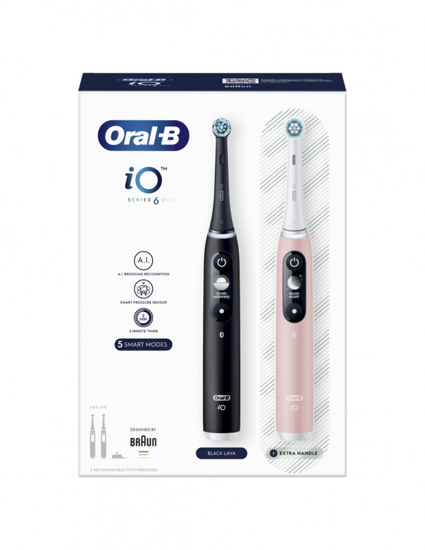 Oral-B Electric Toothbrush | iO6 DuoPack | Rechargeable | For adults | Number of brush heads included 2 | Number of teeth brushing modes 5 | Black/Pink