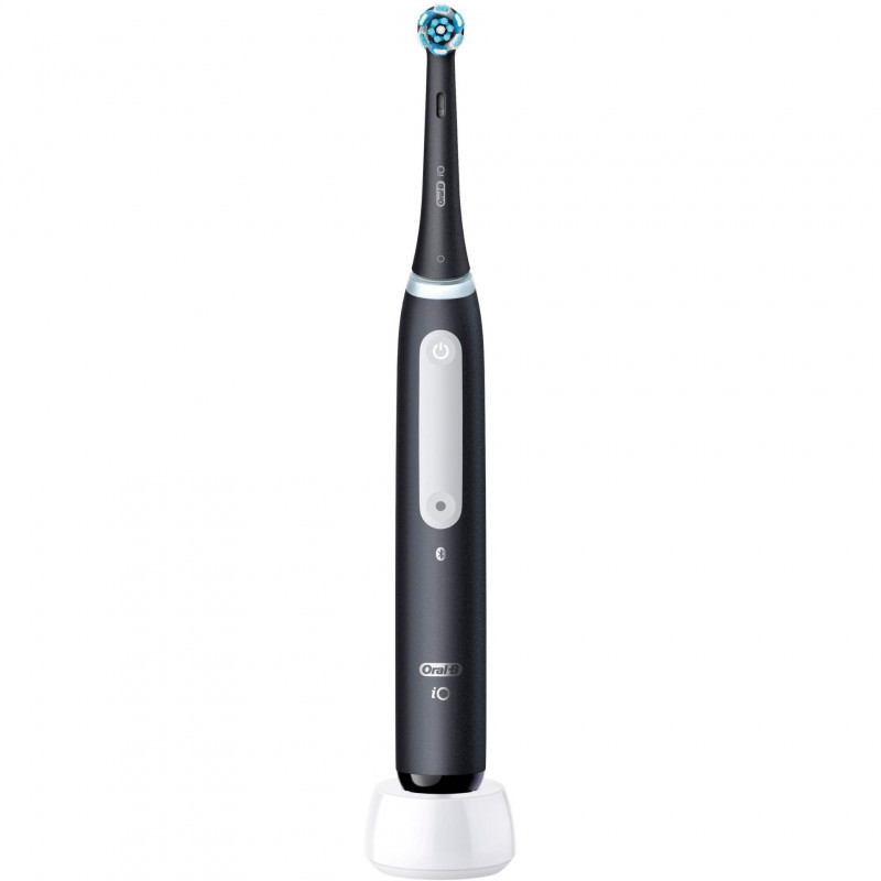 "Oral-B iO Series 4 . Purpose: Adult, Teeth brushing modes: Daily care, Sensitive, Super sensitive, Whitening, Product colour: Black. Power source: Battery, Battery type: Built-in battery, Battery technology: Lithium-Ion (Li-Ion). Package type: Box. Number of handles included: 1 pc(s), Number of brush heads included: 1 pc(s)"\n