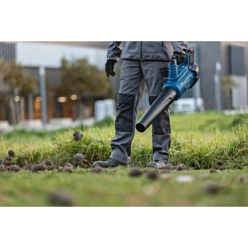 The GBL 18V-750 Professional is the cordless solution for leaf blowing. It is compatible with all batteries and chargers in the Bosch Professional 18V System. Also compatible with AMPShare, the multi-brand battery alliance.
