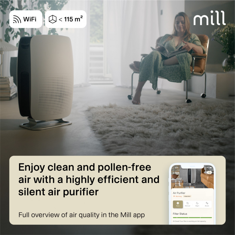 Mill Silent Pro Air Purifier cleans the indoor air in less than 10 minutes (room size <40m2), and effectively removes 99.97% of all harmful particles and gases. |