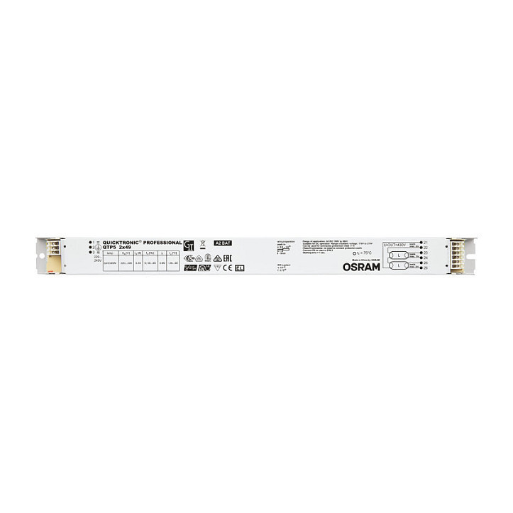 "Bailey Electric & Electronics 92200240420. Input voltage: 220-240 V. Quantity per pack: 1 pc(s)"\n"LEV QUICKTRONIC® PROFESSIONAL TL5 2x49W. Ballast for fluorescent lamps."