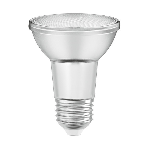 "Osram LED PAR20 DIM P. Bulb power: 6.4 W, Equivalent bulb power: 50 W, Fitting/cap type: E27, Luminous flux: 350 lm, Bulb lifetime: 25000 h, Light colour: Warm white, Colour temperature: 2700 K, Beam angle (max): 36°, Color Rendering Index (CRI): 80, Power factor: 0.5"\n
