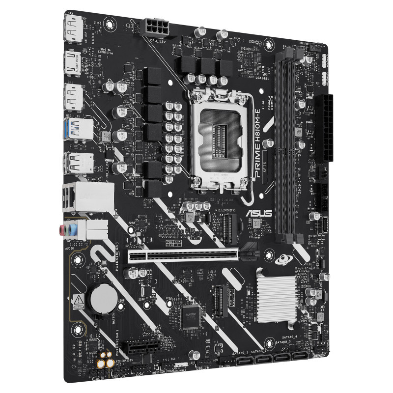 ASUS PRIME series motherboards are expertly engineered to unleash the full potential of the latest Intel® Core™ Ultra Processors (Series 2). Boasting a robust power design, comprehensive cooling solutions and intelligent tuning options, the PRIME H810M-E-CSM motherboard provides users and PC DIY builders with a range of performance optimizations via intuitive software and firmware features. It’s designed to be Advanced AI PC-ready, offering the power and connectivity needed for demanding AI applications."