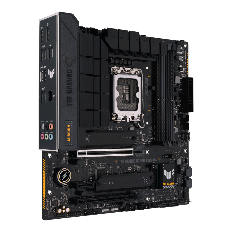 Asus | TUF GAMING B760M-PLUS D4 | Processor family Intel | Processor socket LGA1700 | DDR4 DIMM | Memory slots 4 | Supported hard disk drive interfaces SATA, M.2 | Number of SATA connectors 4 | Chipset Intel B760 | mATX