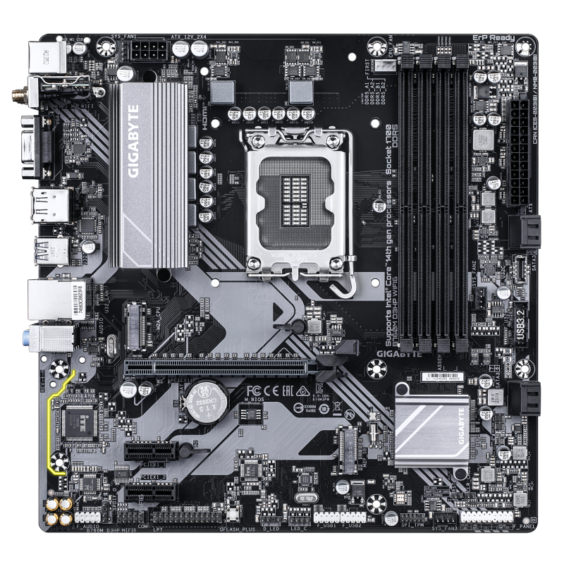 Gigabyte B760M D3HP WIFI6 | Processor family Intel | Processor socket LGA1700 | DDR5 | Supported hard disk drive interfaces M.2, SATA | Number of SATA connectors 4