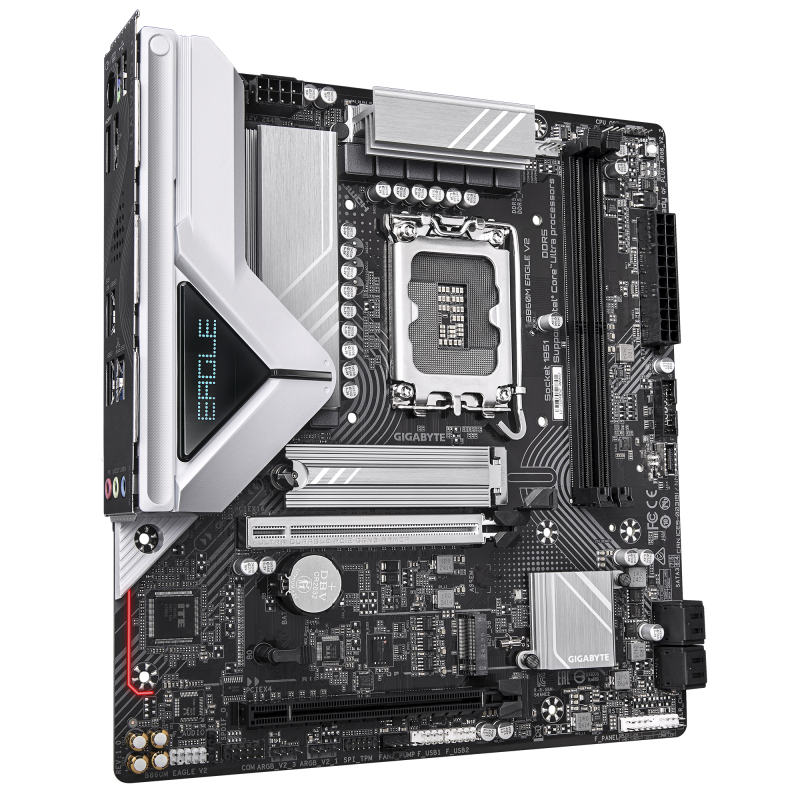 Gigabyte B860M EAGLE V2 | Processor family Intel | Processor socket LGA1851 | DDR5 | Supported hard disk drive interfaces SATA, M.2 | Number of SATA connectors 4
