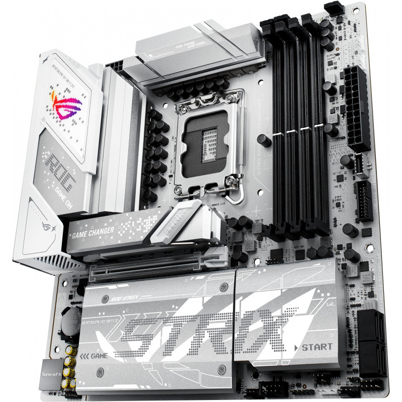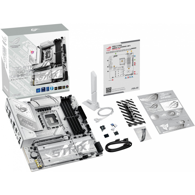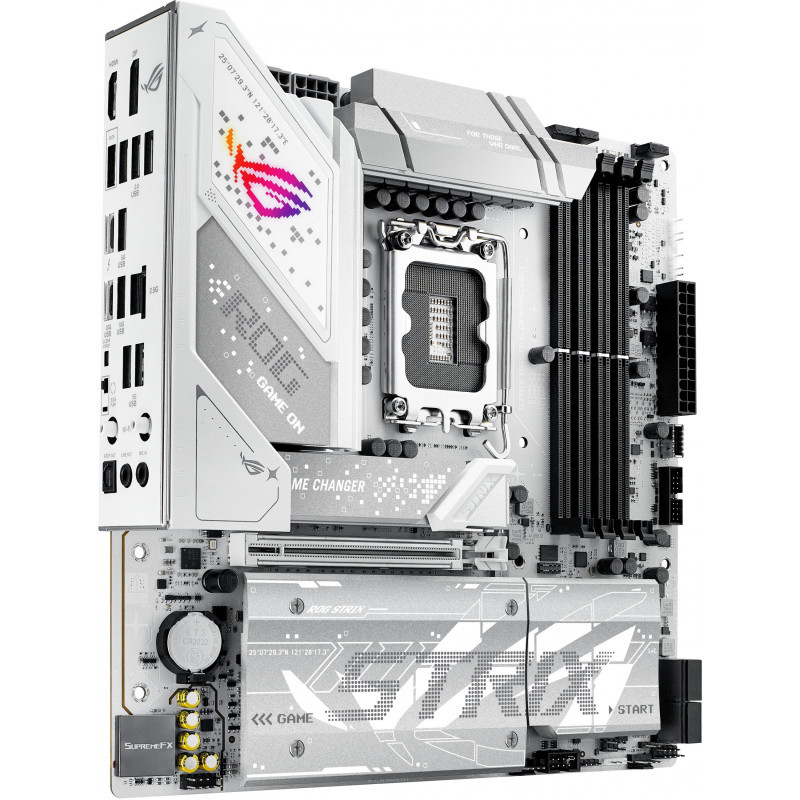 "ASUS ROG STRIX B860-G GAMING WIFI. Processor manufacturer: Intel, Processor socket: LGA 1851 (Socket V1), Compatible processor series: Intel Core Ultra (Series 2). Supported memory types: DDR5-SDRAM, Maximum internal memory: 256 GB, Memory slots type: DIMM. Supported storage drive interfaces: M.2, SATA III, Supported storage drive types: HDD & SSD, RAID levels: 0, 1, 5, 10. Ethernet interface type: 2.5 Gigabit Ethernet, Top Wi-Fi standard: Wi-Fi 7 (802.11be). Component for: PC, Motherboard form factor: micro ATX, Motherboard chipset family: Intel"\n"ROG STRIX B860-G gaming wifi