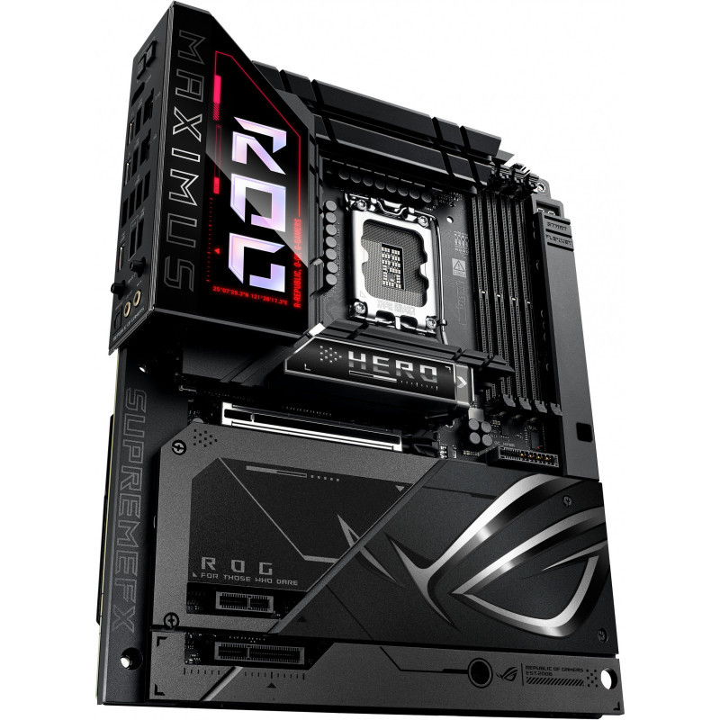 "ASUS ROG MAXIMUS Z890 HERO BTF. Processor manufacturer: Intel, Processor socket: LGA 1851 (Socket V1), Compatible processor series: Intel Core Ultra (Series 2). Supported memory types: DDR5-SDRAM, Maximum internal memory: 256 GB, Memory slots type: DIMM. Supported storage drive interfaces: M.2, SATA III, Supported storage drive types: HDD & SSD, RAID levels: 0, 1, 5, 10. Ethernet interface type: 2.5 Gigabit Ethernet, 5 Gigabit Ethernet, Top Wi-Fi standard: Wi-Fi 7 (802.11be), Wi-Fi standards: Wi-Fi 7 (802.11be). Component for: PC, Motherboard form factor: ATX, Motherboard chipset family: Intel"\n"ROG Maximus Z890 HERO BTF