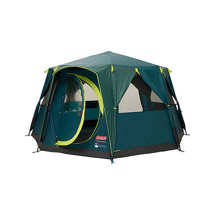 "Coleman Octagon. Number of sleeping places: 8 person(s), Frame type: Hard frame, Total area: 15.7 m². Purpose: Camping, Product colour: Green, Yellow, Number of doors: 1 door(s). Ground cloth material: Polyethylene, Interior material: Polyester, Exterior finish material: Polyester. Width: 3960 mm, Depth: 3860 mm, Weight: 20.6 kg. Package width: 850 mm, Package depth: 320 mm, Package height: 280 mm"\n"One of our most beloved tents has evolved to encompass Coleman's® patented BlackOut Bedroom® design. The Octagon BlackOut provides a full 360° view of your surroundings. Ample living space and the ingenious hinged door gives it a homely feel on the campsite.