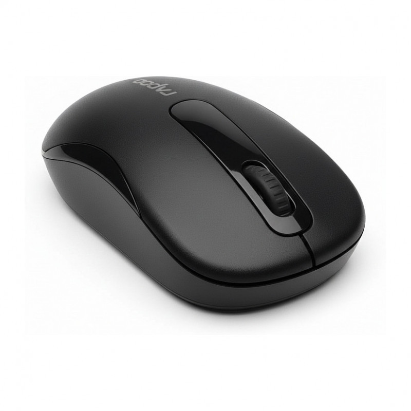 "Rapoo M10 Plus. Form factor: Ambidextrous. Movement detection technology: Optical, Device interface: RF Wireless, Movement resolution: 1000 DPI, Buttons type: Pressed buttons, Buttons quantity: 3, Scroll type: Wheel. Power source: Batteries. Product colour: Black"\n"Wireless Optical Mouse