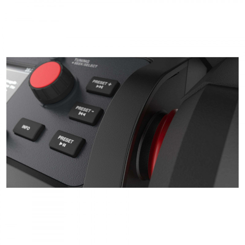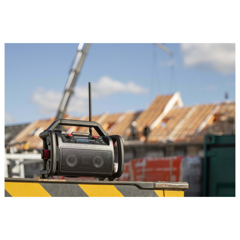 "Perfectpro Rockpro. Radio type: Worksite, Tuner type: Digital, Supported radio bands: DAB+, FM. RMS rated power: 30 W. Driver unit: 7.62 cm. Product colour: Black, Red, Material: Acrylonitrile butadiene styrene (ABS), Metal, Volume control: Rotary. Battery technology: Lithium-Ion (Li-Ion), Battery capacity: 4000 mAh, Battery life (max): 12 h"\n