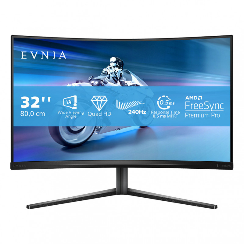 "Philips Evnia 5000 32M2C5500W/00. Display diagonal: 80 cm (31.5""), Display resolution: 2560 x 1440 pixels, HD type: Quad HD, Display technology: LCD, Response time: 1 ms, Native aspect ratio: 16:9, Viewing angle, horizontal: 178°, Viewing angle, vertical: 178°. Built-in USB hub, USB hub version: 3.2 Gen 1 (3.1 Gen 1). VESA mounting, Height adjustment. Product colour: Black"\n"Experience a 240 Hz refresh rate and 0.5 Smart MBR. Not to mention, it is designed to bring you high-contrast, HDR 400 quality visuals and clear Quad HD-quality imagery for a gaming experience that is sure to tick all the boxes."