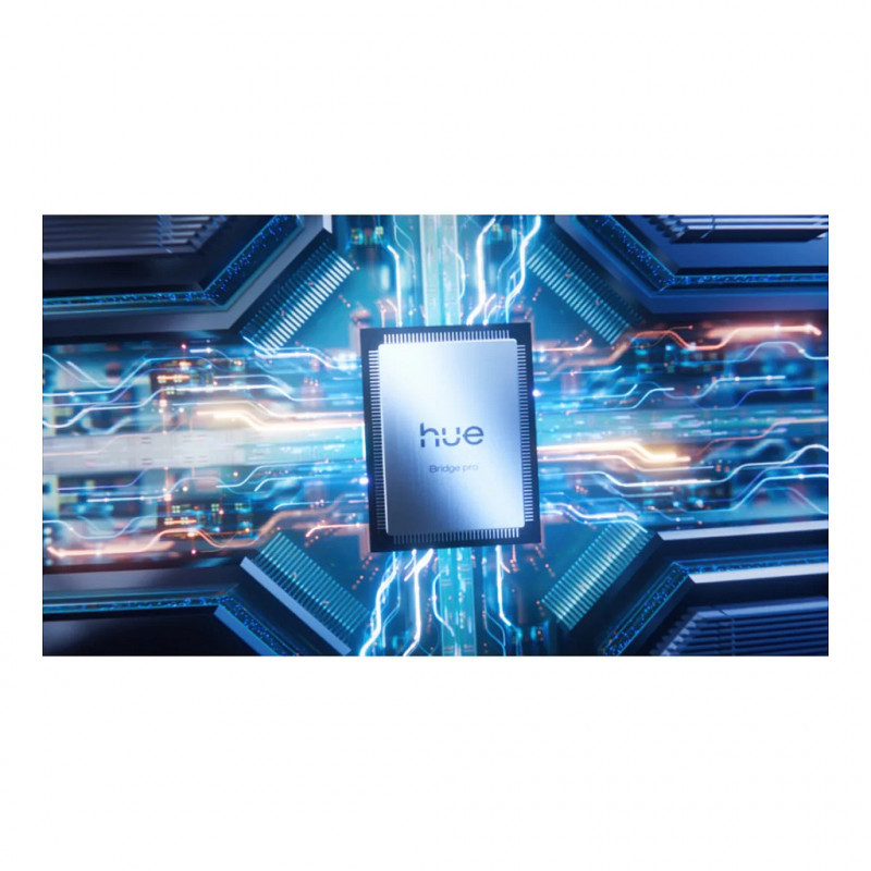 "Philips Starter kit: 3 GU10 bulbs + Dimmer switch + Bridge Pro. Bulb power: 6 W, Equivalent bulb power: 50 W, Fitting/cap type: GU10, Luminous flux: 400 lm, Bulb lifetime: 25000 h, Light colour: White, Colour temperature: 3000 K, Beam angle (max): 35°, Color Rendering Index (CRI): 90, Power factor: 0.7"\n"Get superpowered smart lighting features with the Bridge Pro. Equipped with a new chip capable of running complex algorithms and AI-powered features, it’s faster and stronger than ever. Add ambient colour to any room with the included colour-capable bulbs, and convenient control with the included switch."