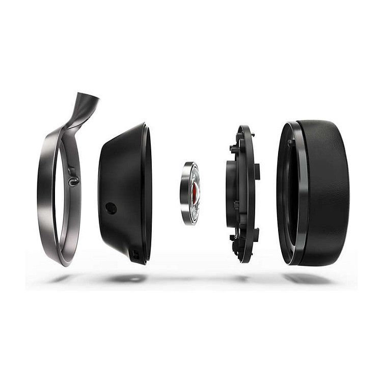 The black Muirhead Scottish leather that covers the outer and inner headband is sustainably and ethically sourced. Beautifully soft and textured, this high-performance leather lends a sophisticated touch to the headphones."