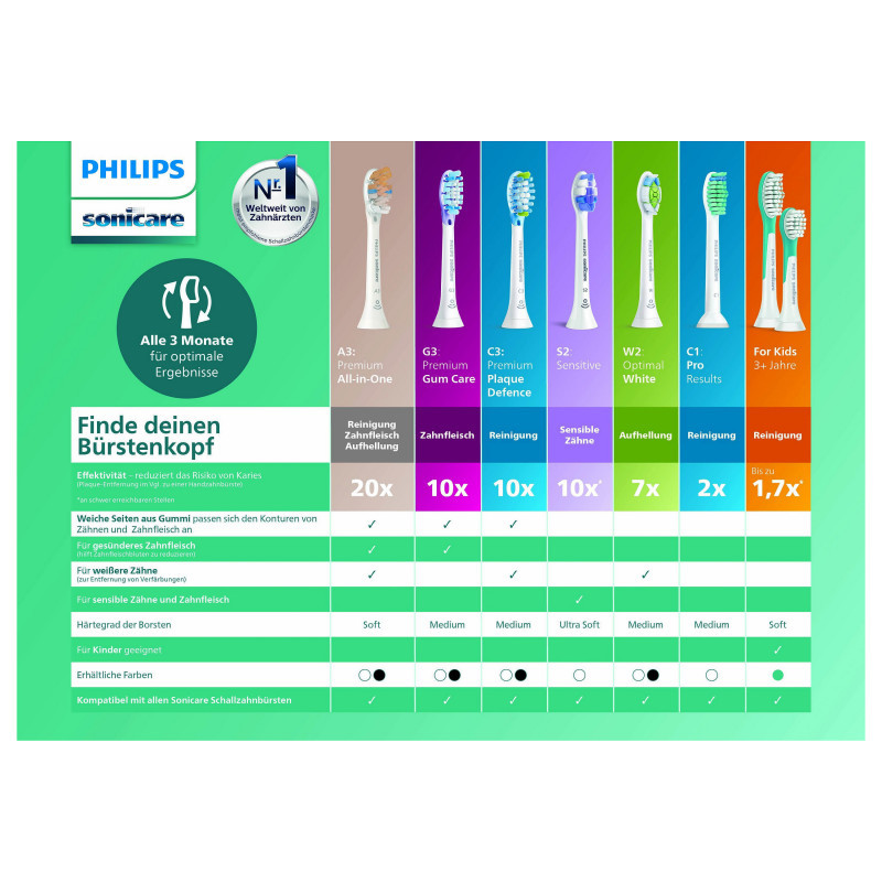 "Philips Sonicare C3 Premium Plaque Defence HX9044/17 4x White sonic toothbrush heads. Number of brush heads included: 4 pc(s), Product colour: White, Material brush head: Soft, flexible rubber sides"\n"Say goodbye to plaque