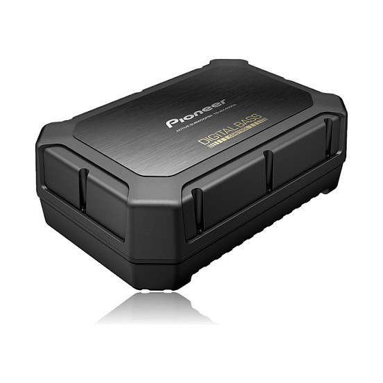 "Pioneer TS-WX400DA. Product type: Pre-loaded subwoofer, Subwoofer type: Active subwoofer, Subwoofer RMS power: 250 W. Housing material: Thermoplastic urethane (TPU). Width: 300 mm, Depth: 200 mm, Height: 100 mm"\n"The TS-WX400DA active subwoofer measures 300mm (W) x 200mm (D) and 100mm (H). The TS-WX400DA is designed to be compact yet still provide an impressive “punch”. Utilizing a “down fire” speaker design the TS-WX400DA is able to produce richer low frequency reproduction that does not seem achievable from such a small enclosure.