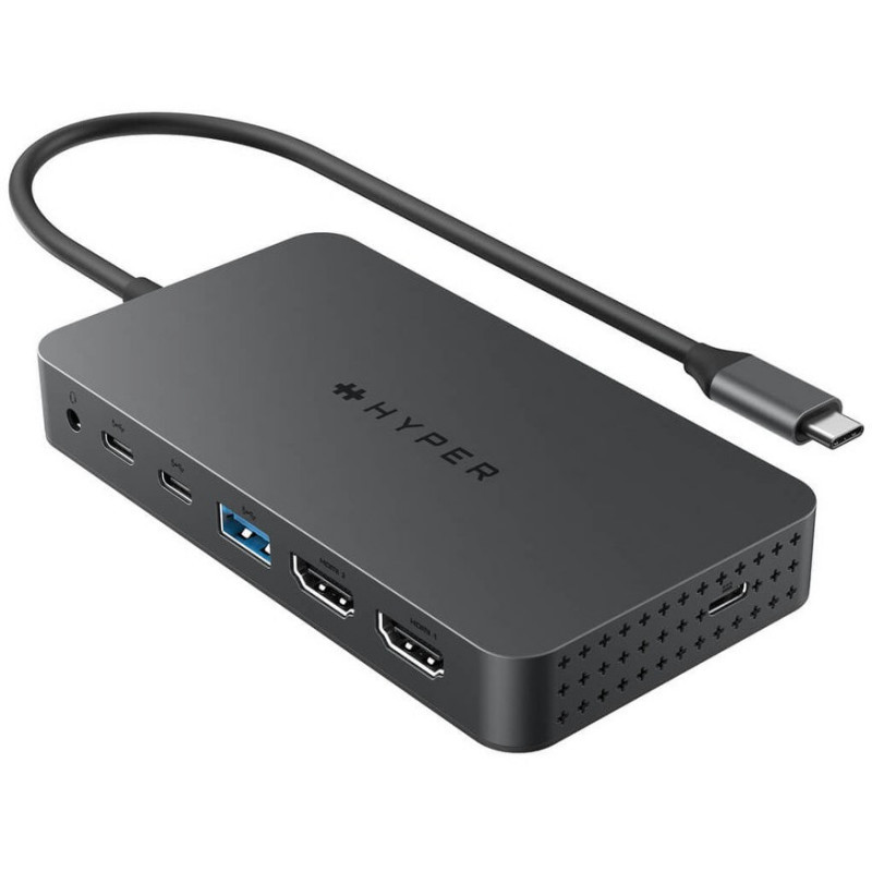 "Targus HyperDrive Next Dual. Connectivity technology: Wired, Host interface: USB Type-C, USB Power Delivery up to: 100 W. Product colour: Grey, Data transfer rate: 10 Gbit/s, HD type: 4K Ultra HD. Power supply type: USB. Other operating systems supported: Android, ChromeOS, iOS. Width: 125 mm, Depth: 67 mm, Height: 18 mm"\n"Introducing the HyperDrive® Next Dual 4K HDMI 7 Port USB-C Hub - the ultimate connectivity solution for creators, editors, photographers, and more. Get dual 4K monitor support for the M1 & M2 MacBook®, PC, and Chromebook™ with 7 ultra-fast ports and lightning-fast data transfers, you can unleash your creative potential anywhere. Experience 2X faster file transfers using the 10 Gbps USB ports, charge your device while using with 100 W pass-through power, and make a sustainable choice with EcoSmart™ technology.