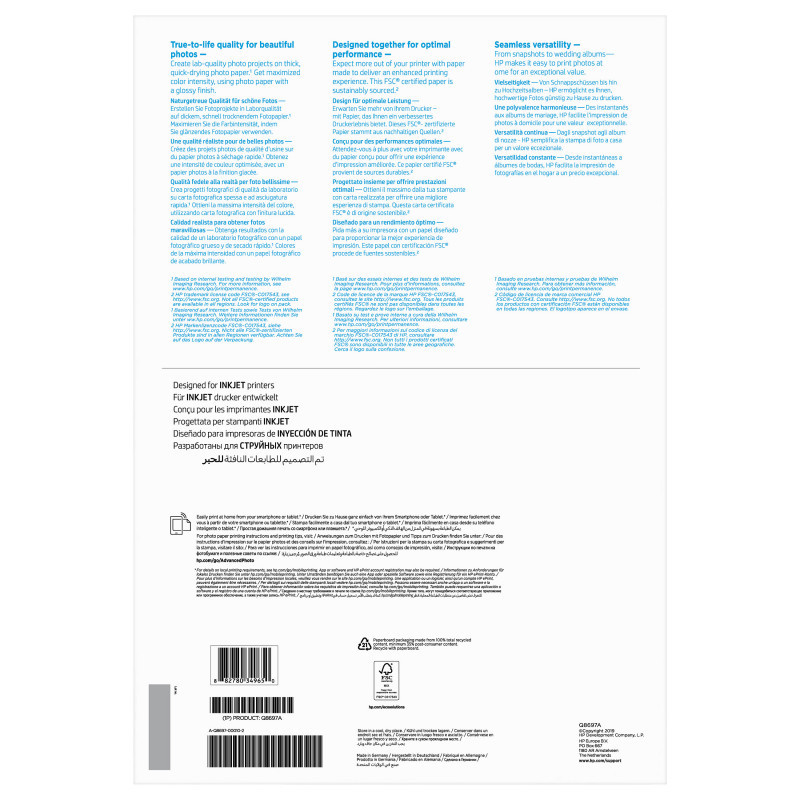 Print beautiful photos you'll love to hold and share. True-to-life photos feature rich, vivid colors and an impressive finish on this FSC-certified[3] paper. Your fade-resistant[2] prints have a glossy finish for brilliant photos."