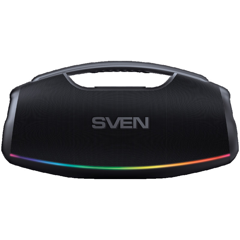 Portable speaker SVEN PS-990, black, power output 180W (RMS), TWS, Bluetooth, RGB backlight, Waterproof (IPx7), USB, Lithium battery, Battery life – up to 16 hours