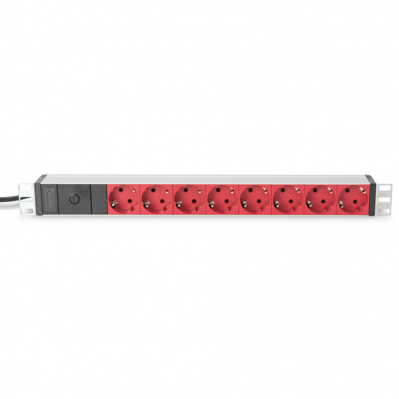 Digitus aliumininė maitinimo juosta su apsauginiu saugikliu, 8 saugios kištukiniai lizdai, 2 m laidas, IEC C14 jungtis