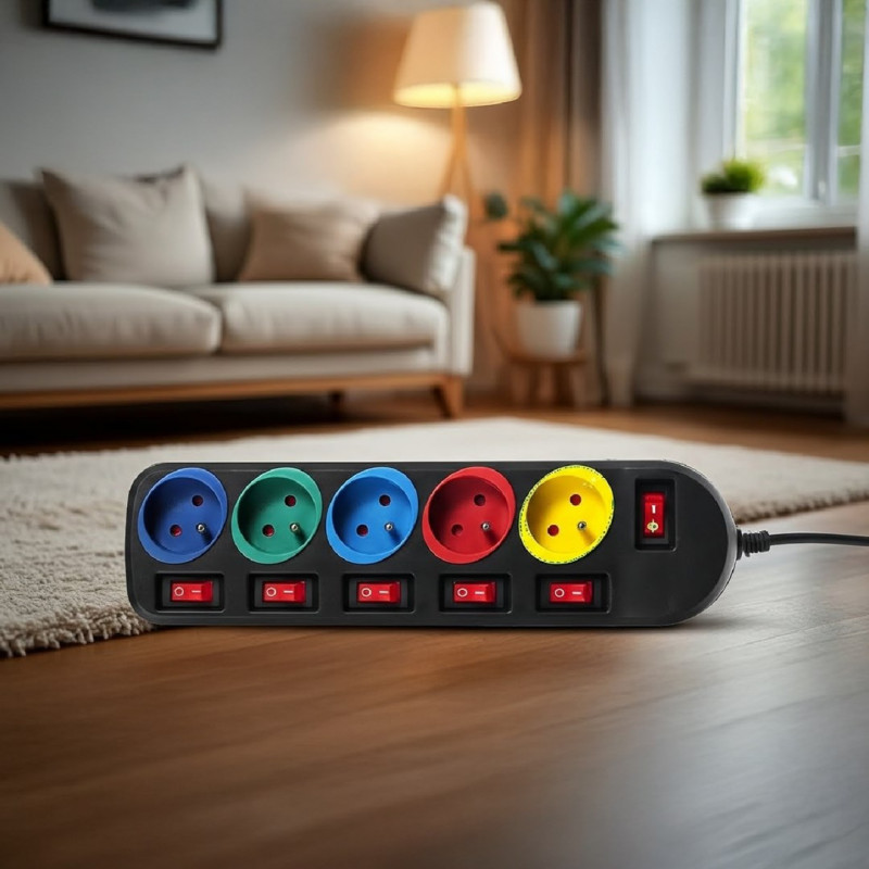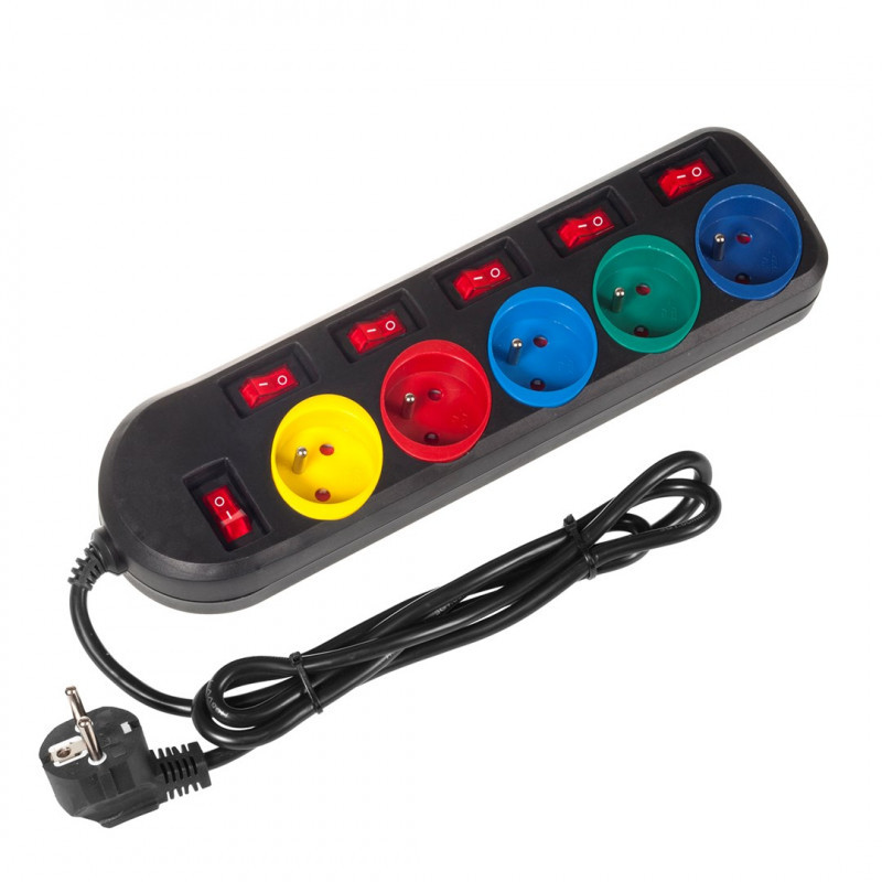 Maclean MCE204M elektros tinklo ilgintuvas 1,5 m 5 AC išvestis(ys / čių) Vidaus Juoda, Multi spalvos
